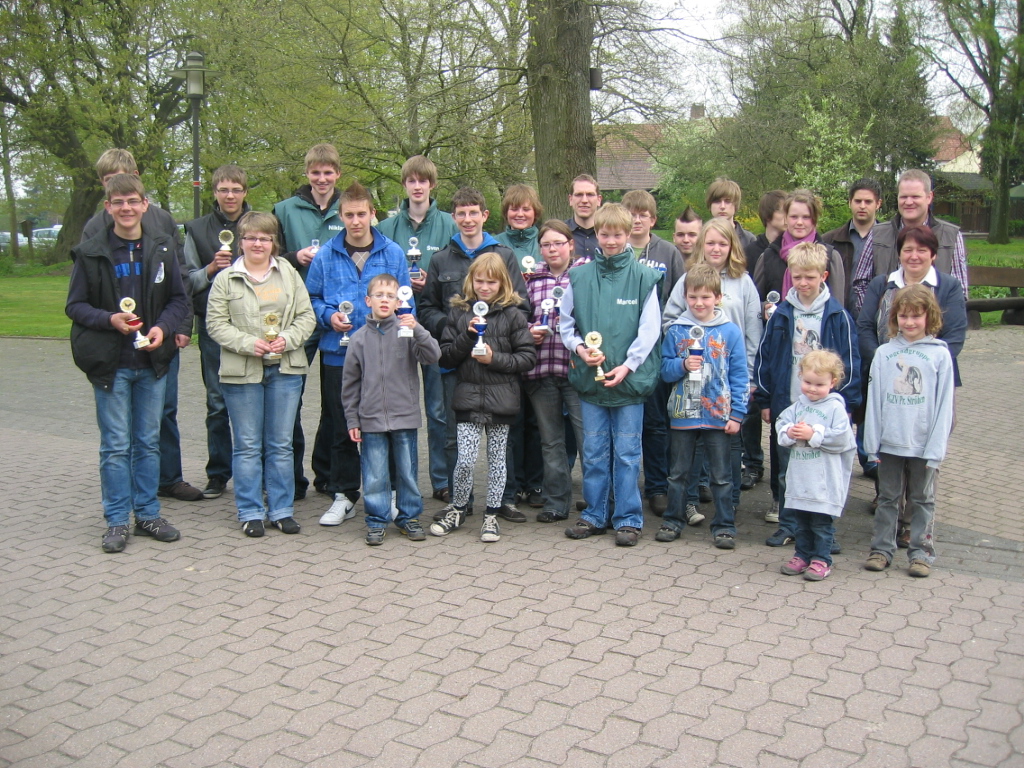 Endlich stehen die Sieger fest. Aufstellung zum Gruppenfoto.
